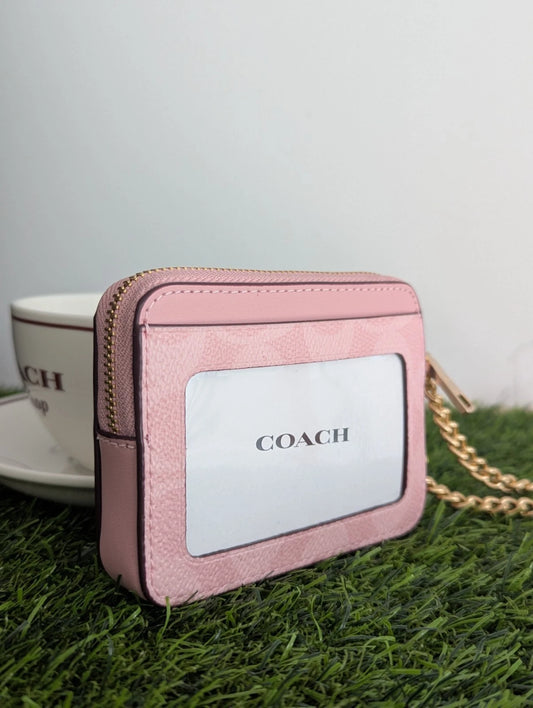 Coach Zip Card Holder In Signature Canvas Powder Pink