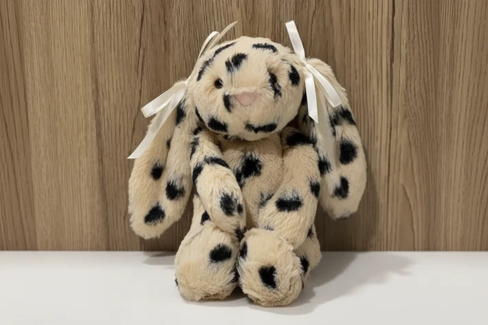 SO soft and adorable! The leopard print is perfect and the quality is amazing. She's my new comfort bunny and goes everywhere with me. Worth every penny!