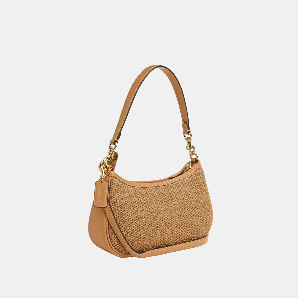 Straw Leather Mix Teri Shoulder Bag with Leather Strap