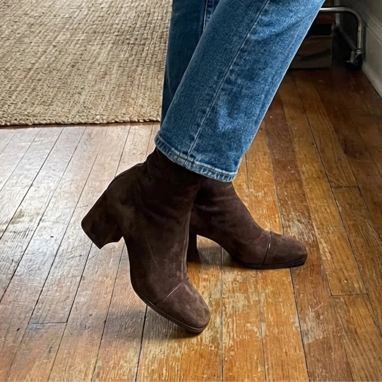 These boots are soft, supportive, and so easy to walk in. The heel is just the right height — stylish but still comfortable for everyday wear. The suede looks lovely in person and pairs well with jeans or dress pants.