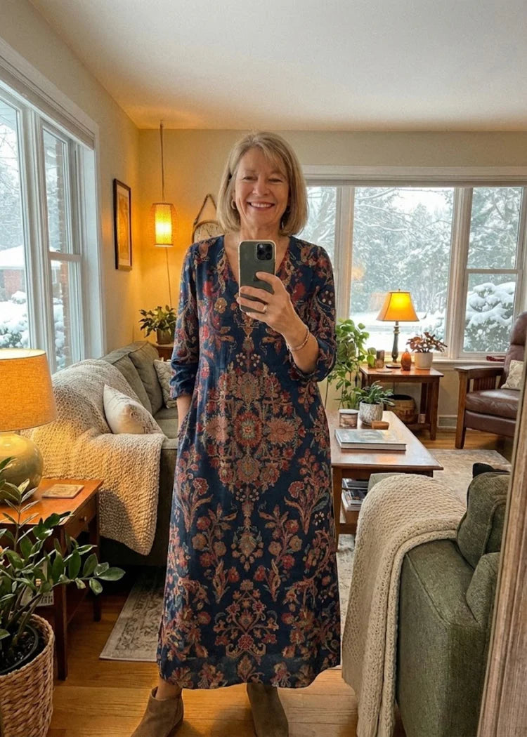 Soft fabric, warm colors, and such a comfortable fit. It has that small-boutique feel I love, and it looks exactly like it should. Really happy with it.